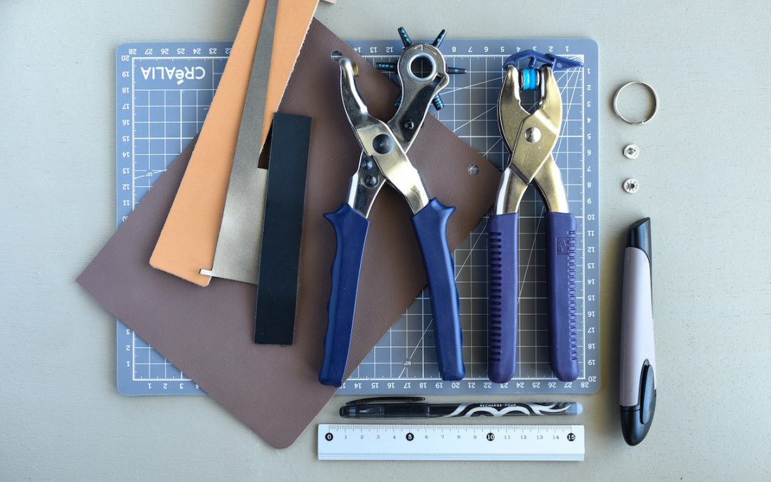 tout le matériel nécessaire à la fabrication d’un porte-clé en cuir